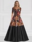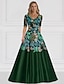 Aライン イブニングドレス エレガント フォーマルドレス フォーマル 結婚式 フロア丈 ハーフスリーブ Vネック ポケット ナイロン とともに フラワープリント 2025