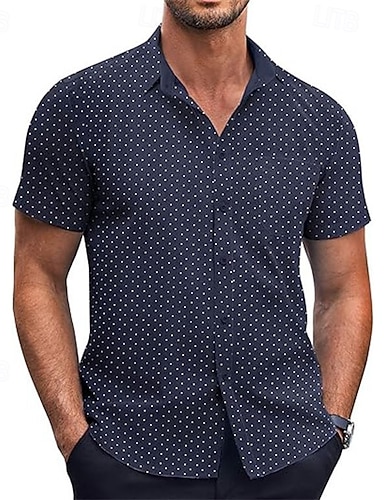男性用 サマーシャツ カジュアルシャツ ビーチシャツ ボタンアップシャツ ブラック ホワイト 長袖 波点 ラペル バケーション ハワイアン ボタンダウン 衣類 ポリエステル ファッション カジュアル 快適