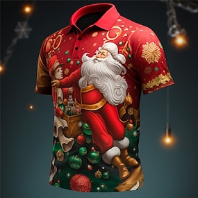 クリスマス メンズ サンタクロース 3D ポロ サンタクロース カジュアル プリント 3D ゴルフ アウトドア デイリーウェア ストリートウェア ポリエステル 半袖 ターンダウン シャツ 白ワイン 秋 / 秋 S M L ラペル ポロ
