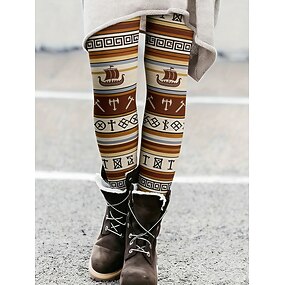 女性用 パンツ レギンス 心地よいレギンス カジュアル ボヘミアン 全長 ハイウエスト ジオメトリ 弾性ウエスト プリント 通気性 快適 伸縮性あり バケーション ストリート デイリーウェア ブラック コーヒー 夏 春 秋 レギュラー
