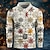 男性用 幾何学模様 ワッフルポロシャツ 長袖 ポロシャツ カラー ヴィンテージ カジュアル バケーション パーティーイブニングウェア 日常着 ボタン 3Dプリント 春 秋 冬 ブラウン