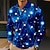 クリスマス 男性用 エルフ ポロシャツ ゴルフポロシャツ 長袖 ポロシャツ カラー カジュアル バケーション 日常着 3Dプリント ボタン 春 秋冬 ブルー