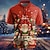クリスマス 男性用 提灯 ポロシャツ ゴルフポロシャツ 長袖 ポロシャツ カラー カジュアル バケーション パーティーイブニングウェア 日常着 3Dプリント ボタン 春 秋冬 Multi Color