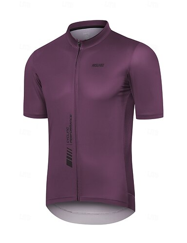 男性用 サイクリングジャージー 純色 文字&番号 半袖 バイク ジャージー トップス 3つのリアポケット付き マウンテンサイクリング ロードバイク 速乾性 反射性ストリップ ウィッキング 弾性ある スポーツ バイオレット ホワイト イエロー 衣類