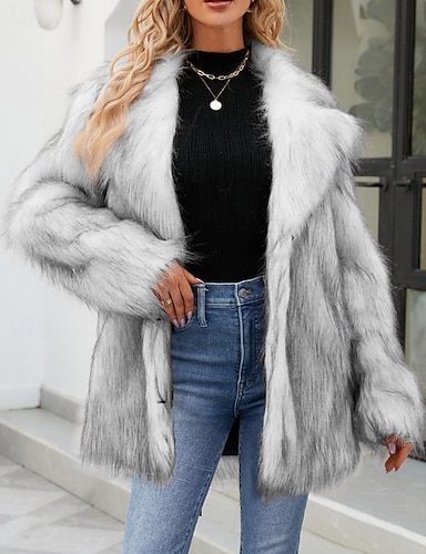 女性用 コート フェイクファーコート 保温 快適 毛皮と革製品 ファッション タイダイ バケーション ストリート お出かけ 週末 ロング 折襟 レギュラー 長袖 アウターウェア ライト 秋 冬