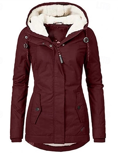 女性用 フリースの上着 コート パーカージャケット 保温 快適 ジッパー ポケット ファッション 近代の カジュアル 幾何学模様 お出かけ 週末 ジッパ- レギュラー フード付き レギュラー 長袖 アウターウェア ワイン カーキ色 冬