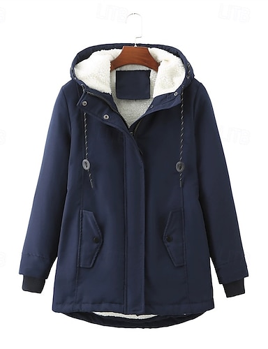 女性用 冬物コート パーカー 保温 快適 ジッパー ポケット ベルト付き カジュアル 純色 バケーション ストリート デイリーウェア お出かけ レギュラー フード付き レギュラー 長袖 アウターウェア 海軍 ブラック ピンク 秋 冬