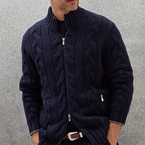 男性用 カーディガンセーター ニットセーター ケーブル ニット レギュラー フルジップ 純色 カラー ファッション クラシック デイリーウェア デート 衣類 秋冬 ダークネイビー M L XL