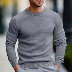 男性用 ドレスセーター ウールのセーター プルオーバーセーター クロップドセーター リブ ニット レギュラー ニット 平織り クルーネック 現代コンテンポラリー ワーク デイリーウェア 衣類 冬 ワイン ブラック S M L
