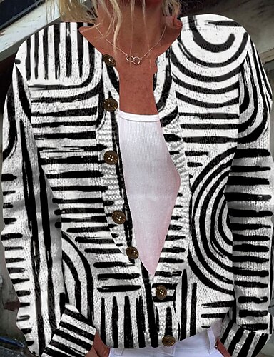 女性用 ニット カーディガン ファッション ストリートファッション 日常 動物 リブ オープンフロント ニット プリント 長袖 レギュラートップス ニット 祝日 お出かけ 週末 ブラック ホワイト 秋 冬