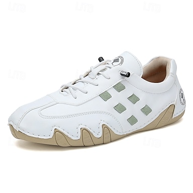 メンズホワイトフェイクレザーカジュアルスニーカー - 軽量で通気性のあるローカットシューズ。普段使い、ウォーキング、旅行に最適です。