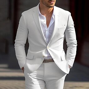 男性用 卒業式 ワッフルブレザー ブレザー ビジネス カクテルパーティー ウェディングパーティー ファッション カジュアル 春 & 秋 綿65% 平織り ポケット ボタン 快適 シングルブレスト ブレザー ホワイト