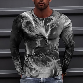 男性用 グラフィック フェニックス Tシャツ 長袖 Tシャツ 3Dプリント クルーネック シャツ デザイナー カジュアル 大きくて背が高い 日常 祝日 ホワイト ライトグリーン ルビーレッド 春 & 秋 衣類 S M L XL XXL 3XL 4XL