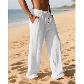 男性用 リネンパンツ カプリパンツ ズボン サマーパンツ ビーチパンツ ポケット 弾性ウエスト 平織り 履き心地よい 高通気性 バケーション 日常 祝日 ハワイアン ボヘミアン ホワイト アーミーグリーン