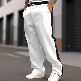 男性用 スウェットパンツ ワイドレッグスウェットパンツ ズボン カジュアルパンツ オープンボトムスウェットパンツ ドローストリング 弾性ウエスト カラーブロック 吸汗性 高通気性 全長 アウトドア カジュアル 日常 ファッション ストリートファッション ブラック ホワイト 伸縮性あり