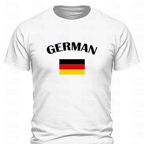 男性用 ドイツ 国旗 Tシャツ ティートップ コットン 半袖 グラフィック シャツ ブラック ホワイト ルビーレッド 快適なTシャツ スポーツ・アウトドア 祝日 ファッションデザイナーの衣類