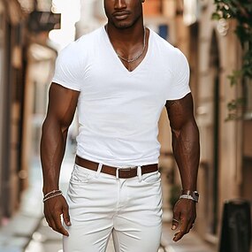 男性用 Tシャツ ティートップ 半袖 Vネック 夏 純色 平織り デザイナー ベーシック 現代コンテンポラリー Vネック バケーション ストリート カジュアル ダークグレー ブラック ホワイト メンズトップTシャツ