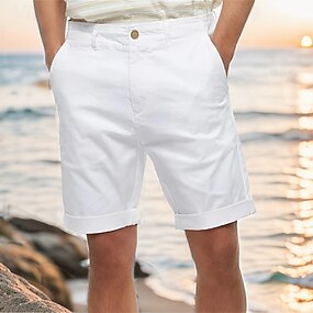 男性用 ショーツ リネンショーツ サマーショーツ ビーチショーツ ボタン ポケット 平織り 履き心地よい 高通気性 ショート バケーション 祝日 ビーチ ハワイアン ボヘミアン ブラック ホワイト