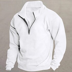 男性用 スウェットシャツ ワッフルスウェットシャツ 路肩に寄せて下さい クォータージッパースウェットシャツ ブラック ホワイト ワイン ネイビーブルー グリーン スタンドカラー 平織り スポーツ 日常 祝日 ストリートファッション カジュアル アスレチック 春 秋 衣類 パーカー トレーナー