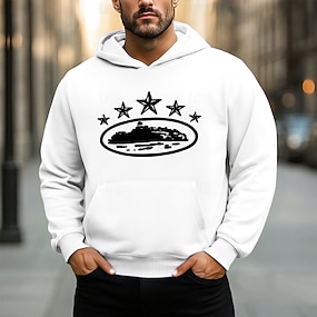 男性用 グラフィック フーディーズ 長袖 トレーナー フード付き 日常 カジュアル 祝日 バケーション 秋冬 ホワイト ブルー ブラウン 衣類 デザイナー S M L XL XXL 3XL