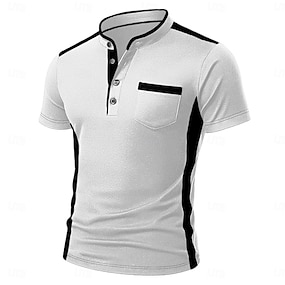 男性用 ボタンTシャツ Tシャツ ヘンリーシャツ ティートップ 半袖 ヘンリー 夏 カラーブロック ファッション デザイナー ベーシック バケーション ストリート お出かけ ダークグレー ブラック ホワイト メンズトップTシャツ
