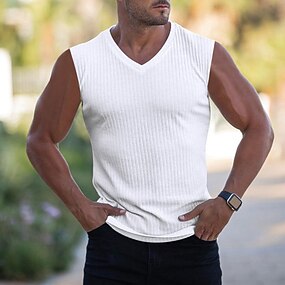 男性用 Tシャツ マッスルシャツ リブニットTシャツ ティートップ 半袖 Vネック 夏 平織り ピットストリップ ファッション デザイナー ベーシック ボタン バケーション ストリート お出かけ ブラック ホワイト ダークブルー メンズトップTシャツ