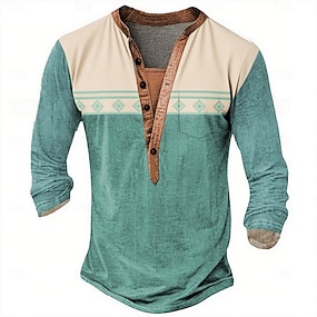 男性用 グラフィック 幾何学模様 ヘンリーシャツ Tシャツ 長袖 ヴィンテージ ファッション デザイナー アウトドア カジュアル 日常 春 & 秋 オールシーズン ダークブラウン パープル ダックブルー ヘンリー ヘンリーTシャツ