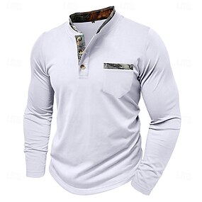 男性用 ボタンTシャツ Tシャツ ヘンリーシャツ ティートップ 長袖 ヘンリー 春 & 秋 カラーブロック ファッション デザイナー ベーシック パッチワーク フロントポケット バケーション ストリート お出かけ ブラック ホワイト ロイヤルブルー メンズトップTシャツ