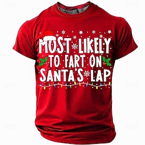 クリスマスの「サンタの膝の上でオナラ」おもしろメンズ半袖クルーネックTシャツ、醜いクリスマスパーティーグラフィックTシャツ、夫や友達へのジョークギフト