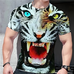 男性用 グラフィック 動物 虎 Tシャツ 半袖 Tシャツ 3Dプリント クルーネック シャツ ヴィンテージ ファッション デザイナー アウトドア カジュアル 日常 ブラック ホワイト ブラウン 春夏 衣類 S M L XL 2XL 3XL