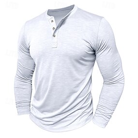 男性用 ヘンリーシャツ ティートップ 長袖 純色 ファッション 日常 ボタン ヘンリー アウトドア ストリート カジュアル 夏 アーミーグリーン ブラック ホワイト ヘンリーTシャツ