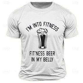 男性用 レタープリント おかしい ビール Tシャツ ティートップ コットン 半袖 グラフィック シャツ ブラック ホワイト アーミーグリーン 快適なTシャツ ストリート スポーツ・アウトドア ファッションデザイナーの衣類