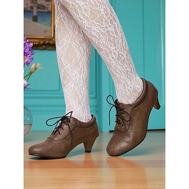 レディース 1930 年代ヴィンテージ オックスフォードヒール - ブラウンのレースアップ ローヒール フェイクレザーシューズ。レトロ風のデイリー、オフィス、スウィングダンスの装いにぴったり。