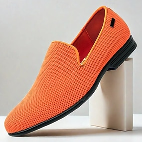 メンズの明るいオレンジ色の通気性メッシュローファー - 夏のイベントに最適なカジュアルなプロムパーティー用スリッポンシューズ