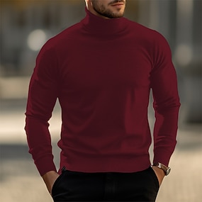 男性用 タートルネックセーター プルオーバーセーター ニットセーター リブ ニット レギュラートップス ニット ベーシック 平織り タートルネック 保温 現代コンテンポラリー カジュアル デイリーウェア 衣類 秋 冬 ワイン ブラック S M L