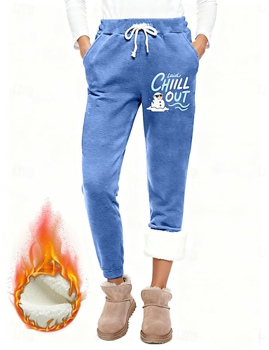 女性用 フリースパンツ チノパン ファッション ベーシック カジュアル 全長 ハイウエスト レタード ドローストリング ポケット プリント 保温 防風 快適 マイクロエラスティック バケーション ストリート カジュアル ピンク ダークピンク ブルー グレー 春 秋 冬 レギュラー