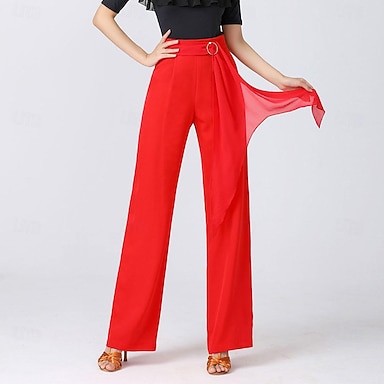 ラテンダンス ボールルームダンス パンツ サッシ / リボン ピュアカラー スプライシング 女性用 性能 訓練 ハイウエスト ポリエステル