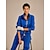 女性用 ミディドレス シースドレス ジャケット付きドレス エレガント カクテル セミフォーマルドレス フォーマル パーティー 結婚式のゲスト レギュラー フラワー 長袖 クルーネック ネイビーブルー 春 秋 冬