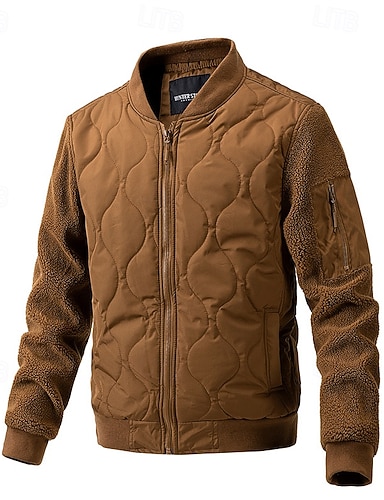 男性用 アウトドアジャケット キルティングジャケット パッド入り フォーマル 家 ウィンドブレーカー ポケット 秋 冬 純色 活発的 中性 シャツカラー レギュラー ブラック ネイビーブルー ブラウン グリーン カーキ色 ジャケット
