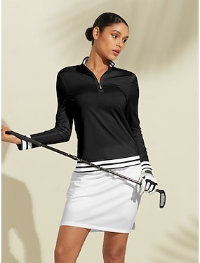 女性用 ポロシャツ ブラック 長袖 トップス 縞 レディース ゴルフウェア ウェア アウトフィット ウェア アパレル