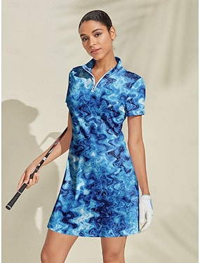 女性用 テニスドレス ゴルフドレス ブルー 半袖 ドレス レディース ゴルフウェア ウェア アウトフィット ウェア アパレル