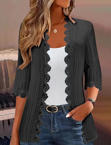 女性用 ニット カーディガン ストリートファッション カジュアル 純色 Vネック ニット 七分袖 レギュラートップス ニット 祝日 お出かけ 週末 ワインレッド ブラック 春 秋