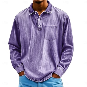 男性用 ポロシャツ ゴルフポロシャツ ストリート ビジネス クラシック 長袖 ヴィンテージ ベーシック 純色 平織り ポケット ビンテージ 秋 冬 季節の変わり目 レギュラー ダークブラウン ブラック ダックブルー グレー ライトブルー パープル ポロシャツ