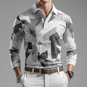 男性用 幾何学的な ゴルフ ポロ 長袖 ポロシャツ ラペル カジュアル アウトドア ストリート アスレイジャー デイリーウェア 3Dプリント ボタン 春 秋 冬 ホワイト ブルー グリーン