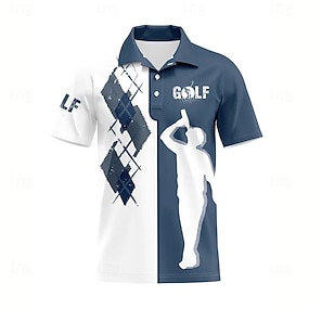 男性用 グラフィック 文字 スポーツポロシャツ 半袖 ポロシャツ 襟付きシャツ カジュアル アウトドア アスレイジャー 3Dプリント 夏 ブルー
