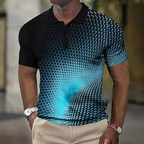 男性用 幾何学的な ワッフルポロシャツ 半袖 ポロシャツ 襟付きシャツ ビジネスカジュアル アウトドア 日常着 アスレイジャー ボタン 3Dプリント 夏 青黒