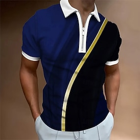 男性用 グラフィック ポロシャツ ジップポロ 半袖 ポロシャツ カラー カジュアル バケーション パーティーイブニングウェア 日常着 ジッパー 3Dプリント 夏 春 ブラックとホワイト