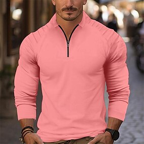 男性用 ゴルフシャツ ゴルフポロ ワーク カジュアル ラペル 長袖 ベーシック 近代の 純色 ボタン ポケット 春 & 秋 レギュラー ワイン アプリコット ブラック ホワイト ダークレッド イエロー ゴルフシャツ
