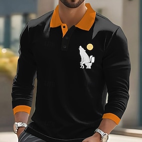 Halloween 男性用 動物 オオカミ ポロ 長袖 ポロシャツ ラペル カジュアル ストリート アスレイジャー デイリーウェア フェスティバルウェア 3Dプリント ボタン 春 秋 冬 ブラック オレンジ