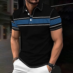 ビジネスカジュアル 男性用 ポロシャツ ゴルフポロ 半袖 祝日 デイリーウェア 春夏 ボタン 3Dプリント カラー ブラック マイクロエラスティック 95%ポリエステル5%スパンデックス